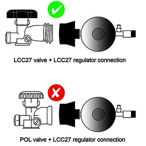 Tthe LCC27 regulator connection is solely compatible with the new LCC27 valved cylinders.